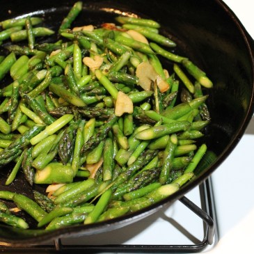 Garlicky Asparagus Serves 2 2 tablespoons olive oil 1 bunch of asparagus, trimmed and cut into 1-inch pieces 8 garlic scapes cut into 1-inch pieces 2 garlic cloves, thinly sliced Salt and pepper to taste In a large skillet, heat the oil over moderately high heat. Add the asparagus and sauté for a few minutes … More Garlicky Asparagus