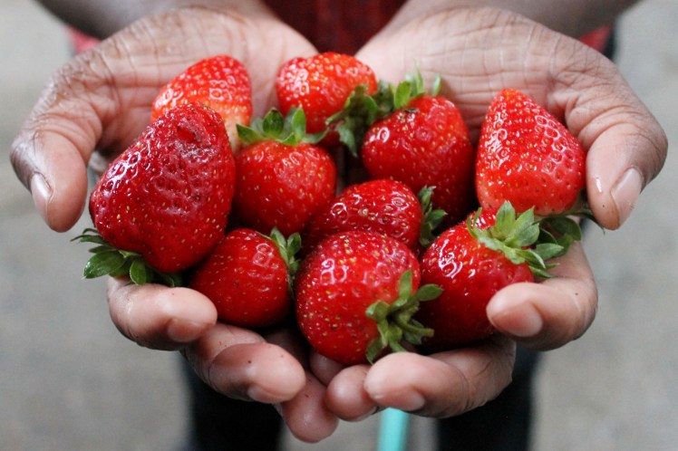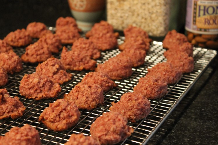 I did a little experimenting and ended up with perfectly pink strawberry oatmeal cookies. I used the banana bites recipe with pureed strawberries instead of bananas and sweetened with 2 tablespoons of honey instead of additional fruit.
